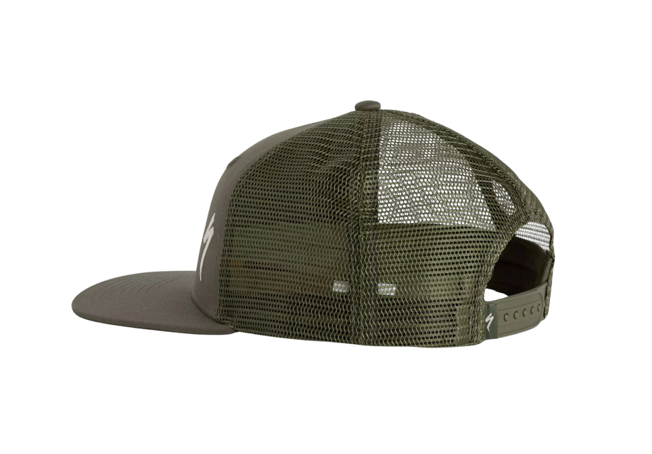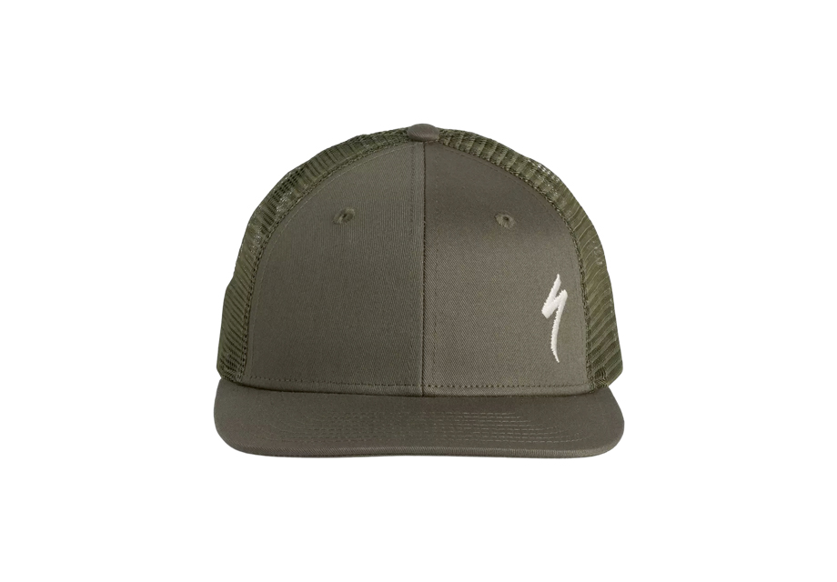 Diseño de gorra trucker de 6 paneles con ala plana.